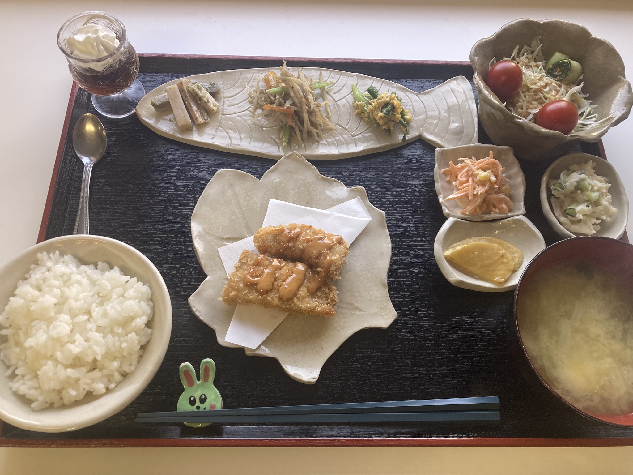 本日は、あっさりタルタルソースでチキンカツをほおばりながら、副菜には肉・魚介・野菜の旨みを充分に引き出した料理の数々で、のんびり味わいながらいただくランチに仕上がりました。