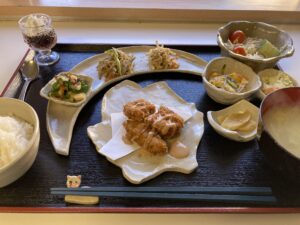 本日は、メインは一粒の中にたっぷり旨みを詰め込んだカツをほおばりながら、副菜にはピリ辛もおり混ぜた料理の数々で、ちょっぴり刺激をもらいつつ自然の豊かさを実感するようなランチに仕上がりました。
