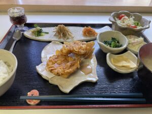 本日は、メインはパリパリ衣の中にぎゅっと旨みを閉じ込めたヘルシー鶏フライをいただきながら、副菜には魚介や野菜の相性を上手く引き出した料理の数々で、優しさを含めたコクや風味を堪能でるようなランチに仕上がりました。