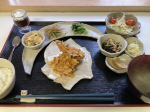 本日は、メインはパリパリ衣の中にたっぷりと旨みを閉じ込めて揚げた鶏フライを豪快にかぶりつきながら、副菜にはちょい辛をおり混ぜた料理の数々で、海の香りや畑の恵みを存分に味わい尽くすようなランチに仕上がりました。