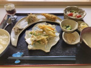 本日は、メインは海の幸と畑の恵みが存分に愉しめるかき揚げをいただきながら、副菜には野菜中心の料理の数々で、ちょっぴり海の香りも感じつつ自然の旨みを味わい尽くすようなランチに仕上がりました。