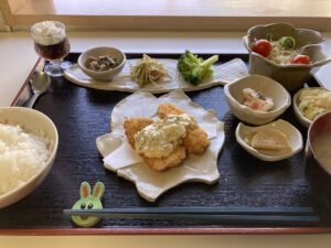 本日は、メインは野菜たっぷりのヘルシータルタルソースで鶏カツを愉しみながら、副菜には山の幸をおり混ぜた料理の数々で、風味や食感を体感しつつコクうま感も満喫できるようなランチに仕上がりました。