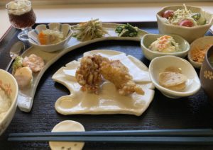 本日は、メインはニンニクたっぷりの鶏カラでスタミナアップしながら、副菜には野菜と肉・魚介類のコラボによる料理の数々で、素材の旨みを確認しながら堪能できるようなランチに仕上げてみました。