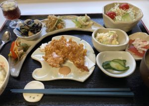 本日は、メインはパリパリ衣の鶏フライを豪快にほおばりながら、副菜には中華風と純和風をおり混ぜた料理の数々で、色んな味をゆっくり吟味しながら味わうランチに仕上げてみました。