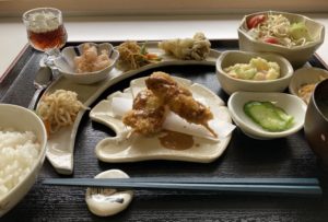 本日は、メインは豚肉との相性バッチリのねぎを挟んだかつをいただきながら、副菜には肉・野菜・キノコ類の素材を存分に活かした定番に新メニューをおり混ぜた料理の数々で、噛めば噛むほど旨みが飛び出して味わい深いランチに仕上がりました。