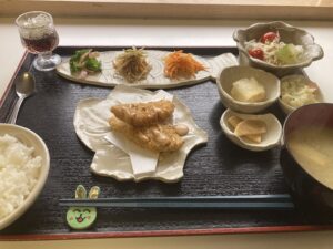本日は、メインは衣の中にぎゅっと旨みを閉じ込めたカツをかぶりつきながら、副菜には魚介や肉類や野菜類を使った料理の数々で、ゆったり感の中でのんびりと一口一口愉しみながらいただくようなランチに仕上がりました。