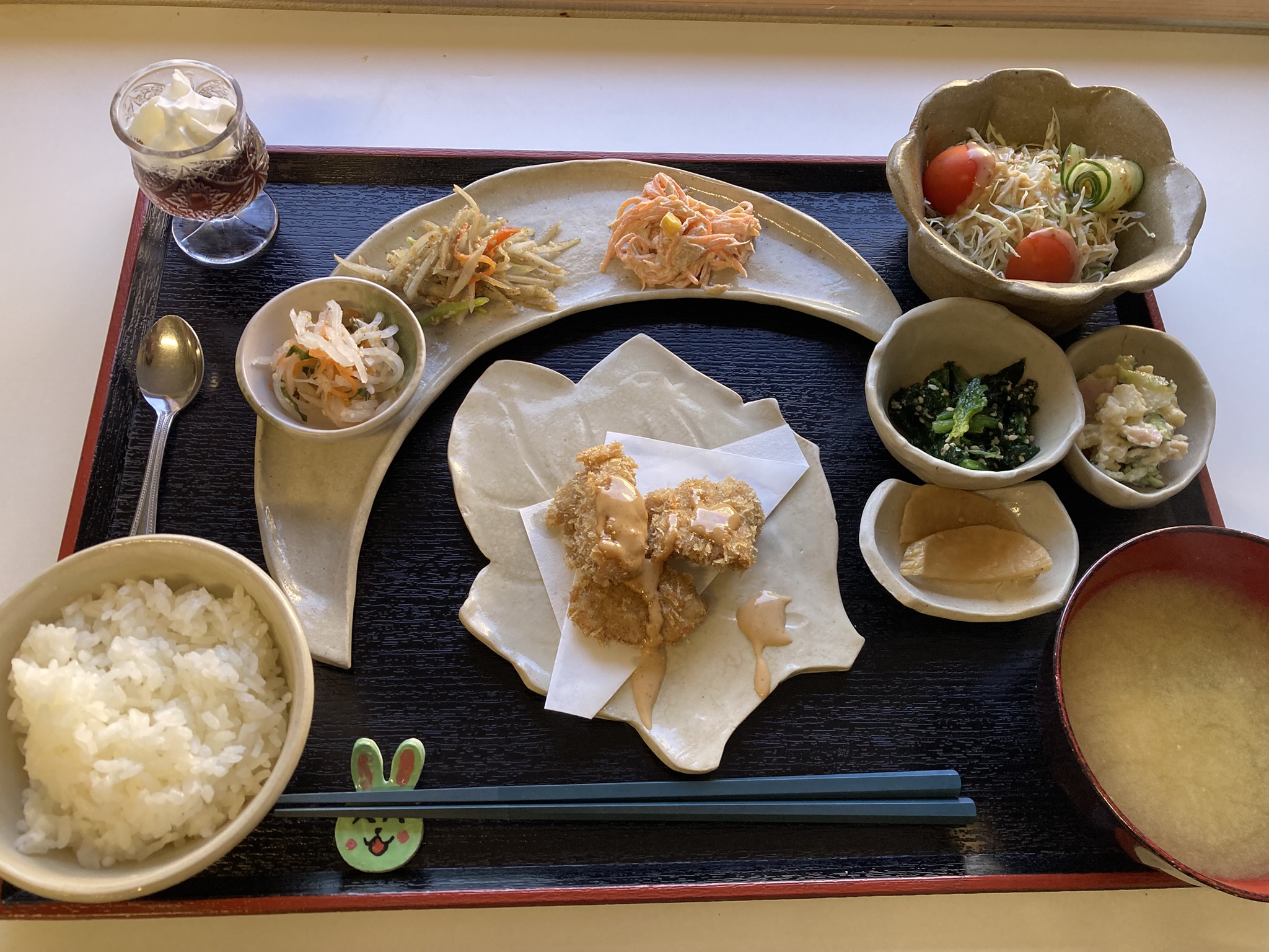 本日は、メインは衣の中にぎゅっと旨みを閉じ込めたコクうまトンカツを豪快にかぶりつきながら、副菜には昔懐かしい田舎風料理の数々で、こころも身体も優しさに包まれながら、ほっこり感の中でいただくようなランチに仕上がりました。