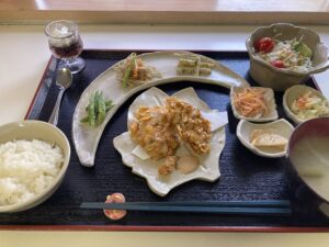 本日は、メインはパリパリ衣の中にぎゅっと旨みを詰め込んだヘルシーフライをほおばりながら、副菜には新メニューも取り入れた料理の数々で、大自然を感じつつ食感と薫りを存分に愉しめるようなランチに仕上がりました。