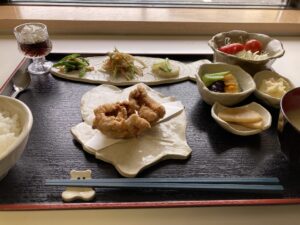 本日は、メインは皆んなに人気のコクうま鶏カラをほおばりながら、副菜には魚介や野菜や肉類の旨みを引き出した料理の数々で、それぞれの特長と相性も良さを堪能しつつ愉しみながらいただくランチに仕上がりました。