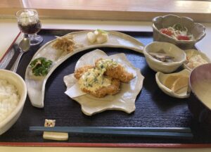 本日は、メインはヘルシーなタルタルソースをたっぷりかけた鶏カツをかぶりつきながら、副菜には魚介や肉類や野菜類をうまく組み合わせた料理の数々で、食感・風味・旨みを存分に堪能できるようなランチに仕上がりました。