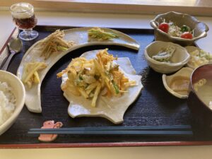 本日は、メインは海の香りと畑の恵みが愉しめるかき揚げをいただきながら、副菜には野菜とコラボした料理の数々で、食感を感じつつ風味やコクを満喫できるようなランチに仕上がりました。