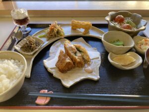本日は、メインは大葉とチーズと梅をささ身で挟んで揚げたヘルシーな鶏カツをほおばりながら、副菜には田舎風料理の数々で、自然の風味豊かな旨みを思う存分に味わい尽くせるようなランチに仕上がりました。