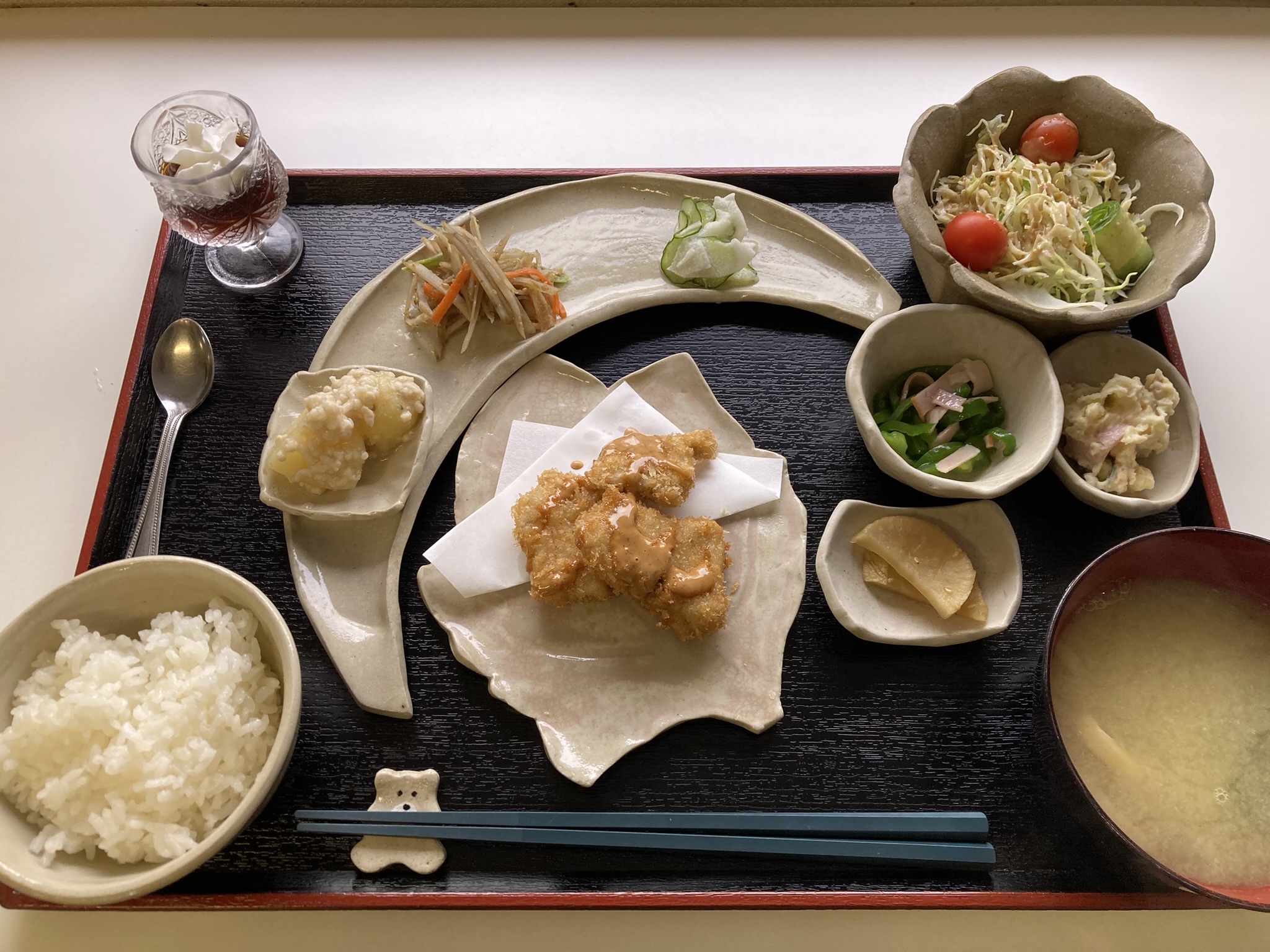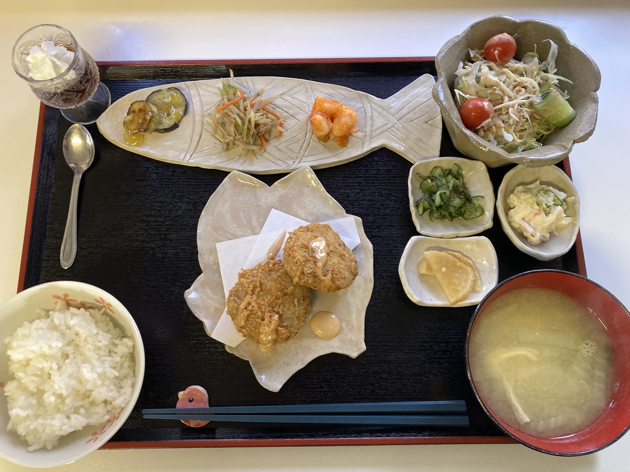 本日のランチ メインのおかず一品、サブメイン一品、 小鉢三品、ごはん、みそ汁、サラダ付き 田舎の母の味です。 |